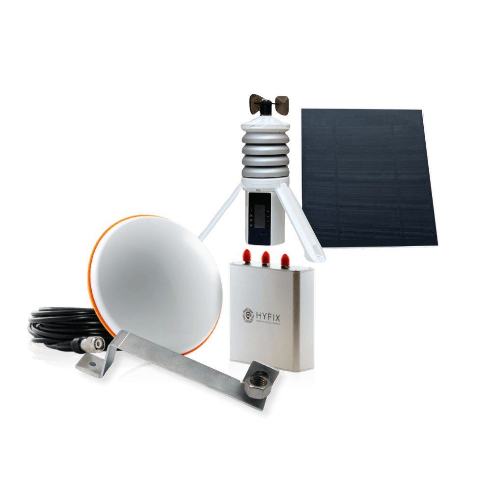 Launch a rooftop GEODNET station and add a portable SKY‑100 (solar) weather node. Triple‑band L1/L2/L5, quick setup, fast shipping